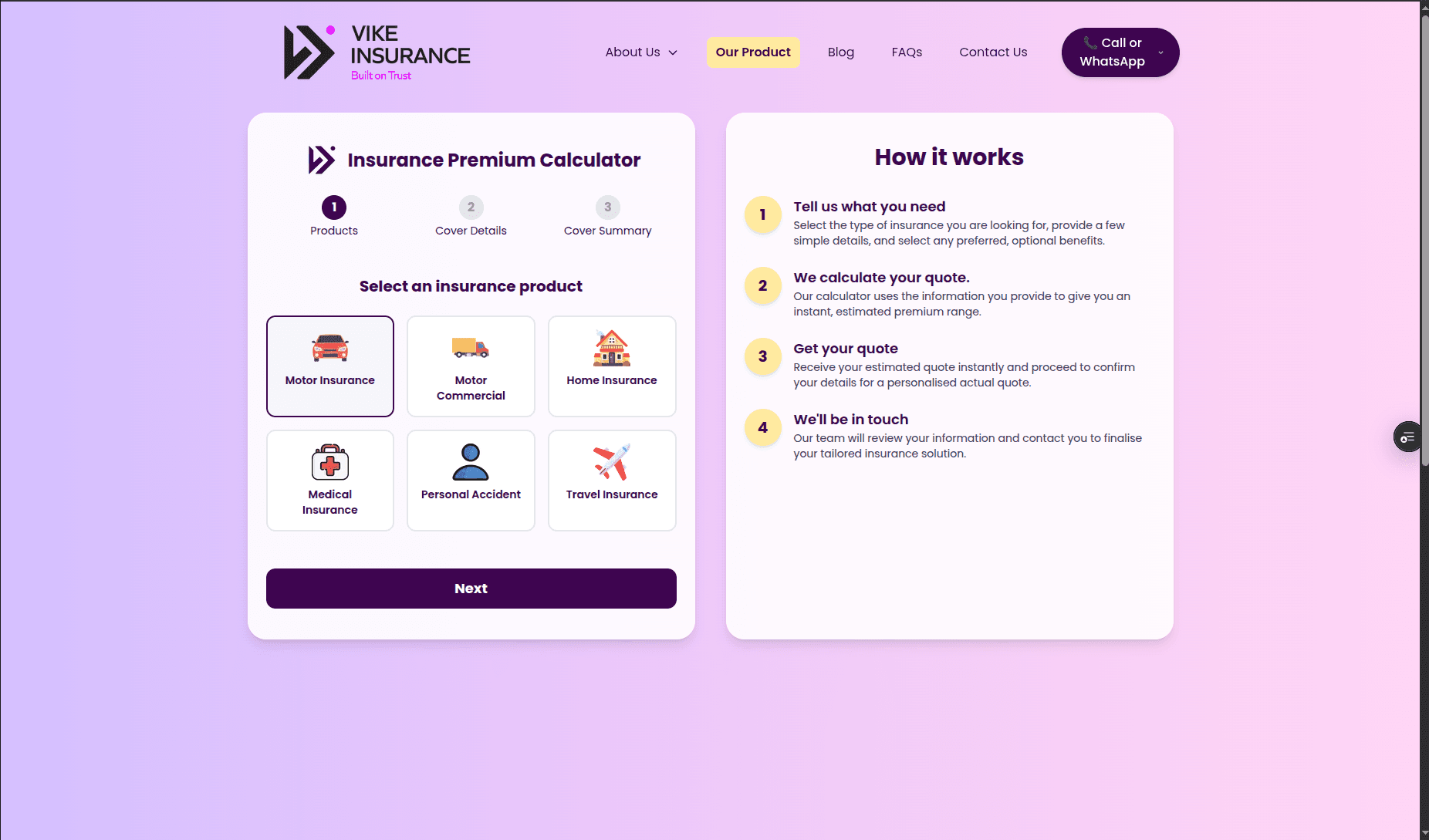 The new Vike Insurance website positions the brand as a credible, modern brokerage firm with a strong digital presence. By combining a professional visual identity with a conversion-focused user experience, the site supports business growth through increased enquiries, improved customer trust, and clearer communication of services.